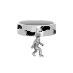 Most cultures have accounts of human-like giants in their folk history. In North America, there have been thousands of reported sightings of Bigfoot since 1950, with one-third of reports located in the Pacific Northwest. The legends predate the name “Bigfoot,” having been a part of Native American folklore for hundreds of years. There has been no conclusive proof of the existence of either but that didn’t stop us from making this dangle charm ring featuring Sasquatch himself and his legendary footprints.