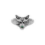 This ring features a fierce feline with a sparkling green stone clenched between its teeth and a crescent moon marked on its forehead. A symbol of power, instinct, and a little bit of menace, it’s made for those who don’t soften their edges. Equal parts protective and untamed. Crafted in stainless steel.