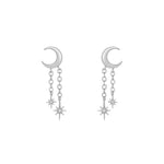 Vintage inspired and celestial in spirit, these earrings feature crescent moons with delicate chain drops ending in radiant stars. A dreamy balance of movement and light, they capture the magic of the night sky in every detail.