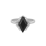 A dramatic black center stone is surrounded by sparkling accents, capturing the spirit of nocturnes, compositions devoted to the night. Crafted in sterling silver, it’s a piece that commands the dark with elegance.