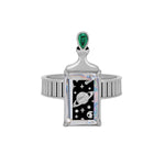 With a touch of vintage charm, this ring captures the cosmos as if it were bottled up and kept close. Beneath a clear crystal, planets, stars, and moons unfold in intricate detail, a miniature universe you can carry wherever you go. A piece that feels timeless yet otherworldly, it’s perfect for dreamers and stargazers alike. Crafted in sterling silver.