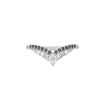 A curved V ring featuring a double row of stones with various two-tone options. The kite set princess cut at the point is flanked by 4 smaller kite site stones, that then transitions seamlessly to pavé. Elegant when worn solo and can enhance any ring it is paired with. Handmade in Los Angeles, CA using ethical and sustainable gemstones and recycled 14K Gold.