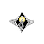 This ring features a lone wolf howling beneath a full moon, a timeless symbol of strength, independence, and the call of the wild. Crafted in stainless steel, the band is detailed with moon phases along the sides, making it a striking piece for those who walk their own path.